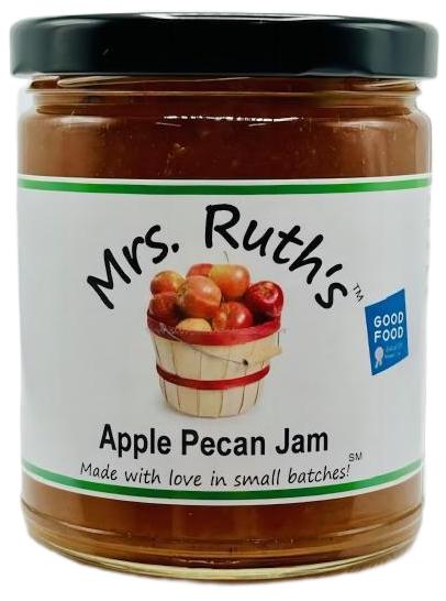 Mrs. Ruth's Apple Pecan Jam - Good Foods Awards Finalist! Sweet fresh apples highlighted with pecans. Southern goodness for your biscuits, to highlight pork or finish off your ice cream! One of our all-time best sellers - southern goodness in a jar! (10 oz Net Weight)