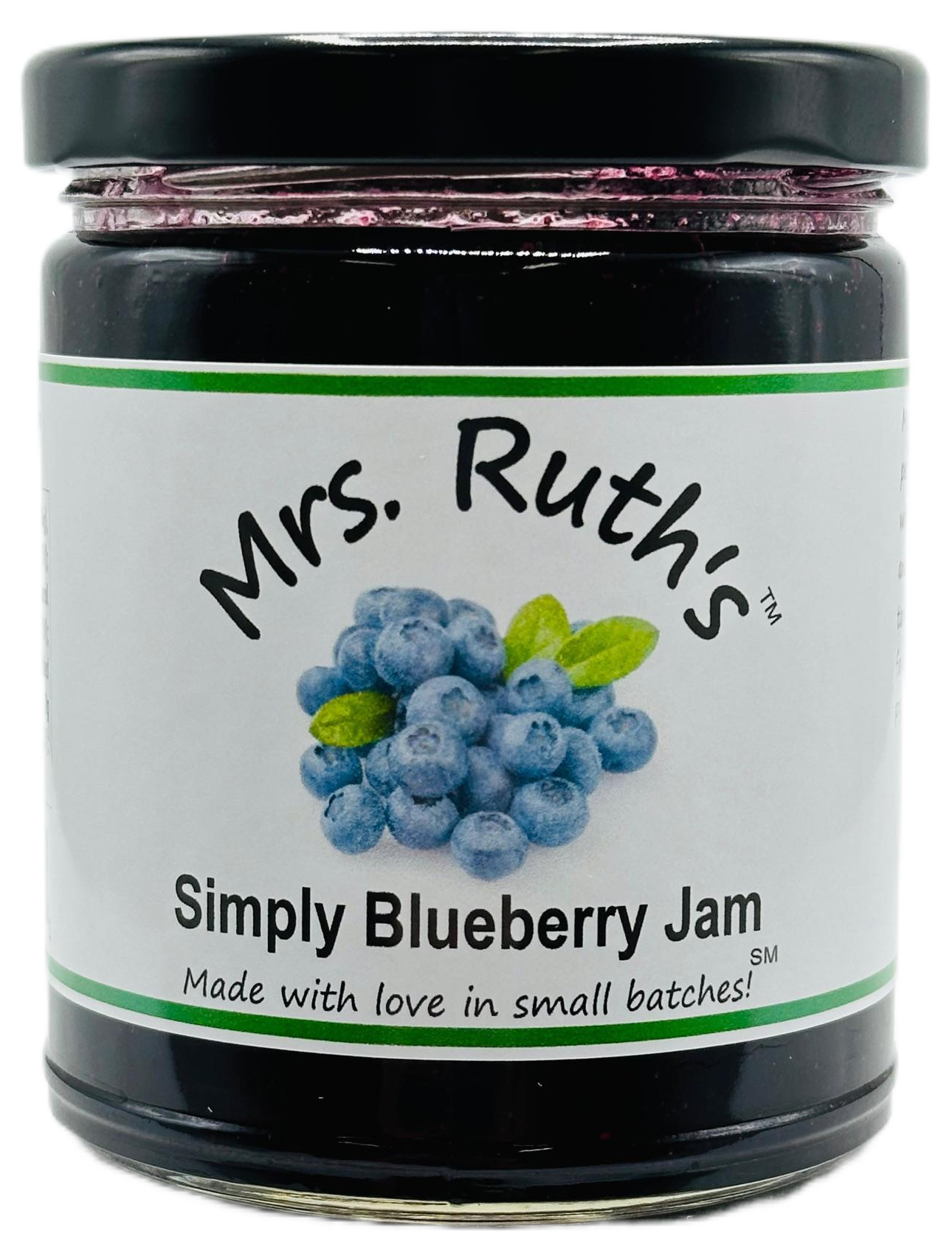 Mrs. Ruth's Simply Blueberry Jam - Perfectly ripe NC blueberries with just the right amount of cane sugar and a splash of lemon deliver a sweet and tangy burst with flavor in every bite. A fan favorite on toast, pancakes, yogurt and PBJs!